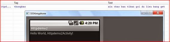 3.Qua file java chính, trong hàm onCreate tạo đối tượng HttpClient và HttpGet.